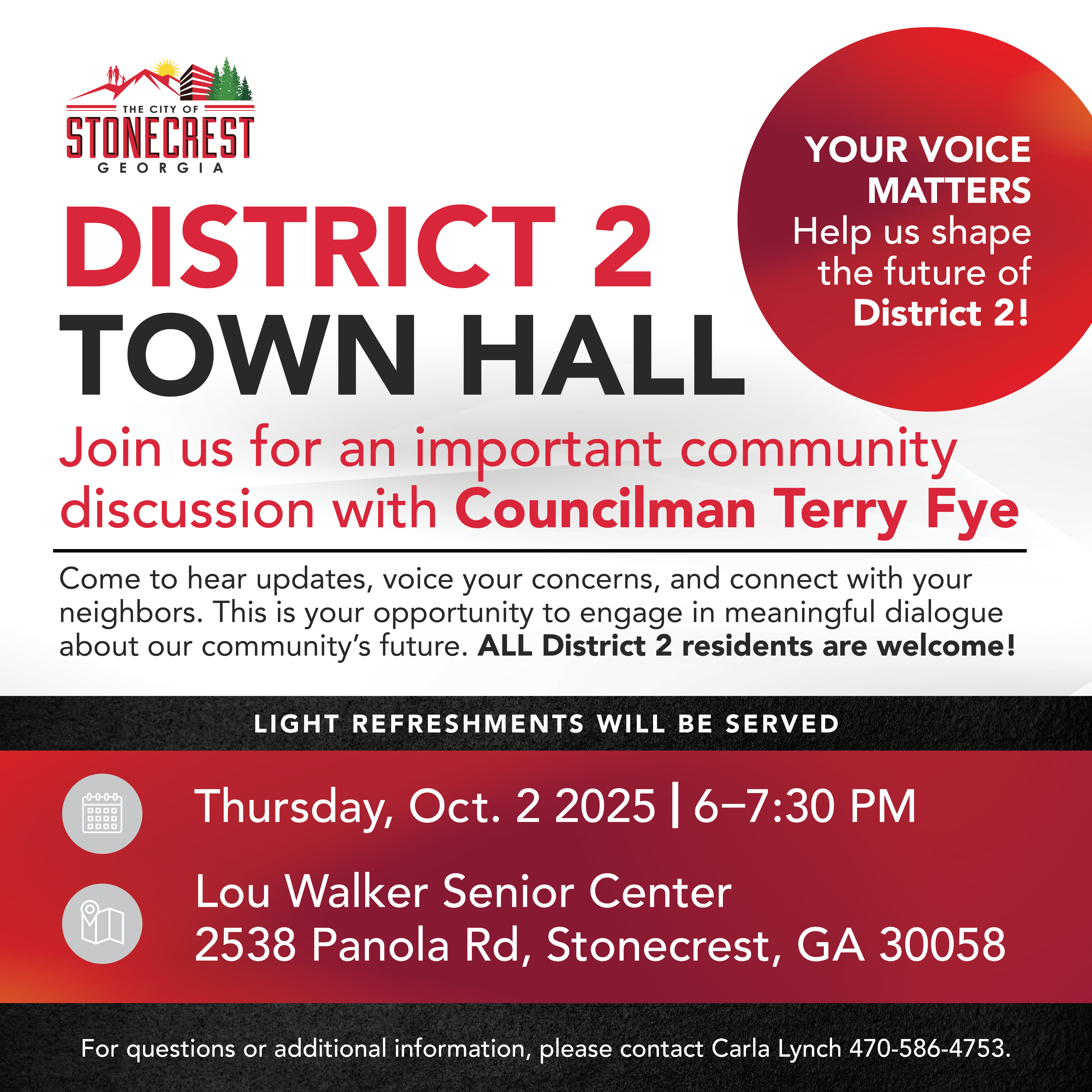 District 2, join Councilman Terry Fye for an important community discussion.