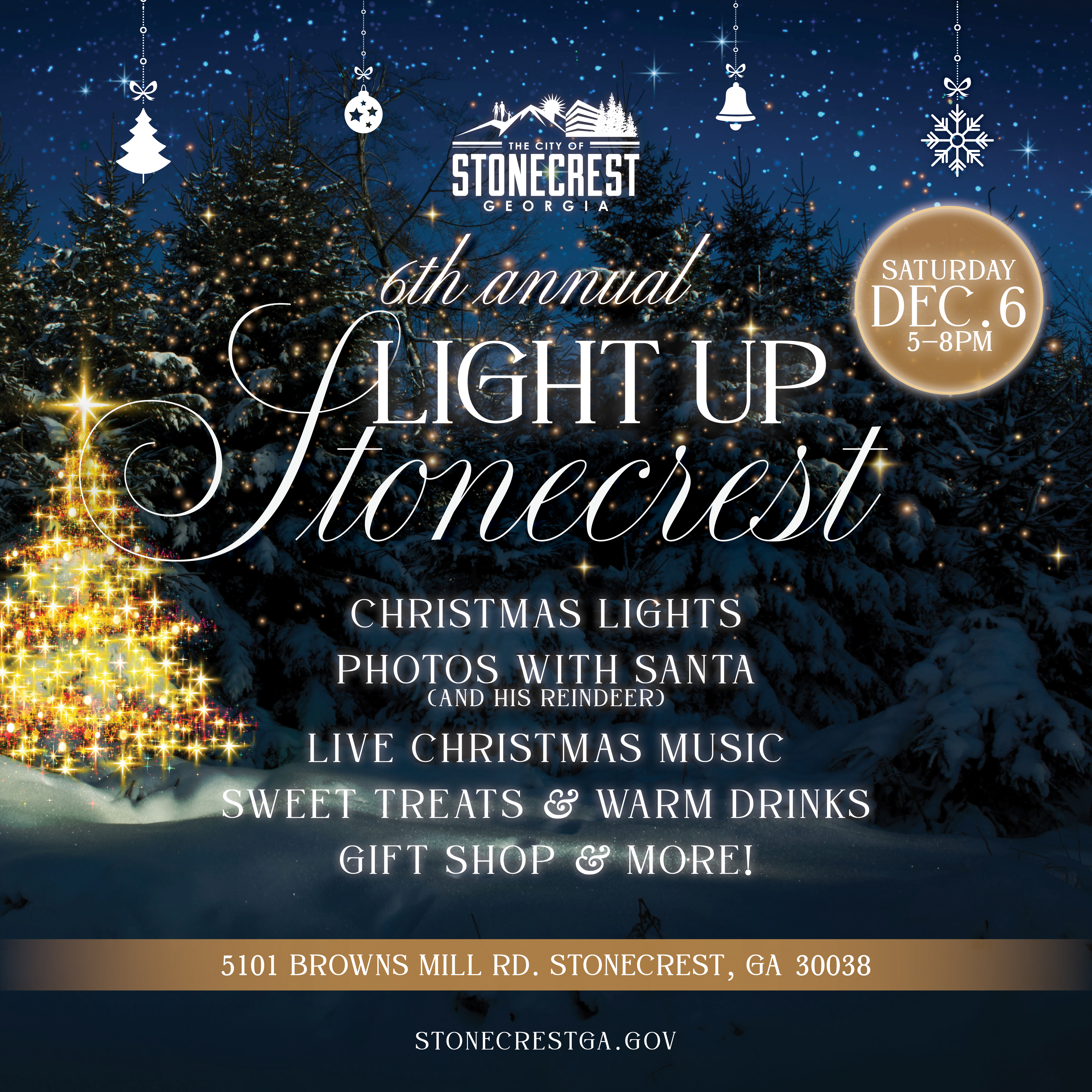 The City of Stonecrest invites you to our 6th Annual Light Up Stonecrest event on Saturday, Dec. 6, from 5-8 p.m. Get into the festive spirit as we illuminate Stonecrest with dazzling Christmas lights, marking the beginning of a magical holiday season.